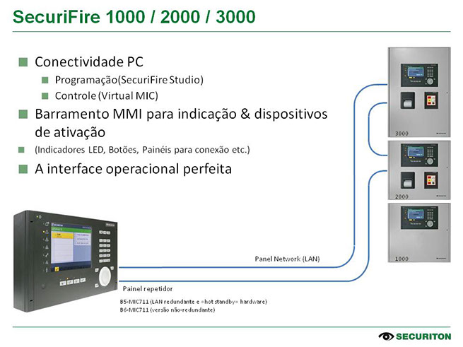 A programação é realizada no software SecuriFire Studio.