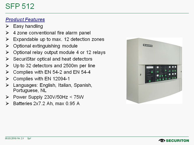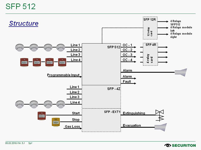 A central SFP 512 é um painel convencional utilizado para aplicações de combate e extinção contra incêndio.