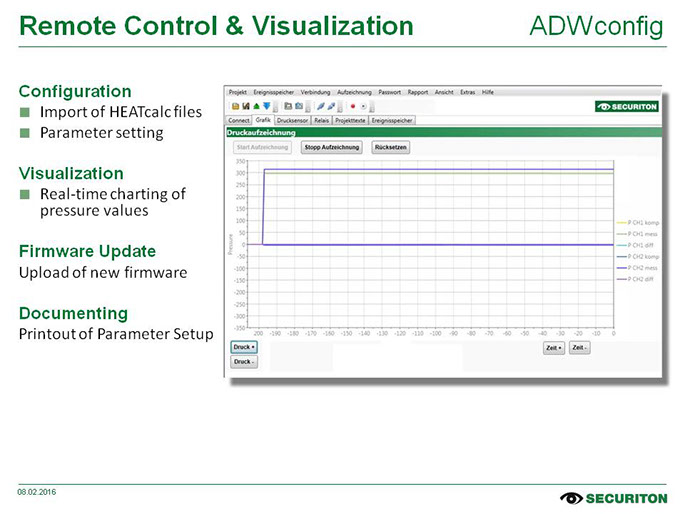 Sistemas simples podem ser configurados diretamente no aparelho sem usar um PC – nessa tarefa, o EasyConfig irá guiá-lo pelos passos individuais. A prática ferramenta de software ADW Config é usada para sistemas mais complexos e adaptações específicas a aplicações. Amplas funções de análise e opções de configuração asseguram a operação segura e econômica do seu sistema. A uniformidade de ambas as ferramentas de software é outra vantagem. A configuração do aparelho calculada pelo ADW HeatCalc pode ser salva como um arquivo diretamente no aparelho usando o ADW Config.