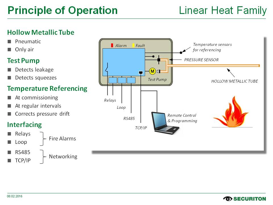 Seja o monitoramento completamente automático de grandes áreas, a resistência a gases corrosivos, extrema umidade e altas temperaturas ou a diferenciação entre alarmes falsos e perigo real; a lista de requisitos para um detector de calor linear de ponta é longa e detalhada.